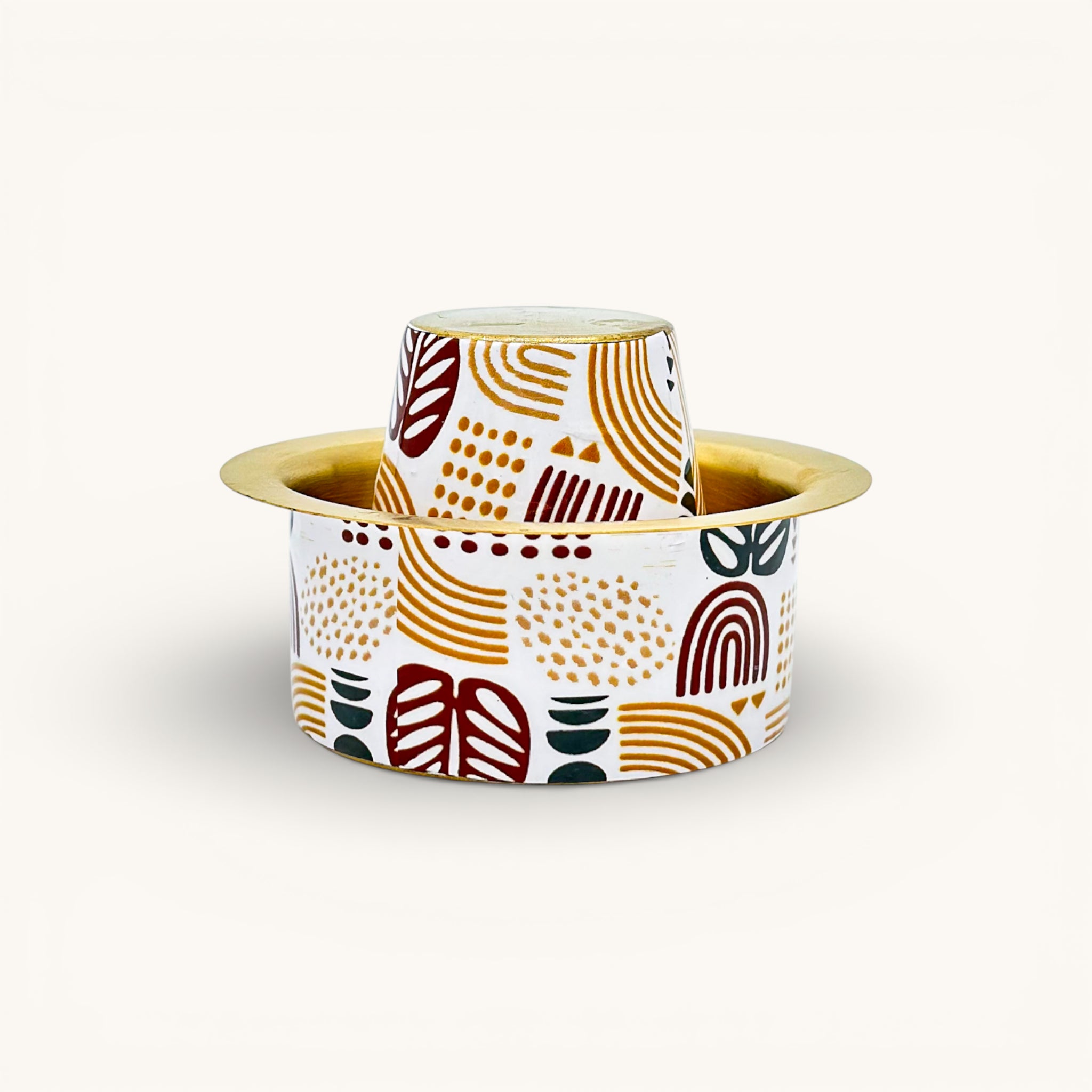 Brass Coffee Tumbler Set with Printed Tropical Design