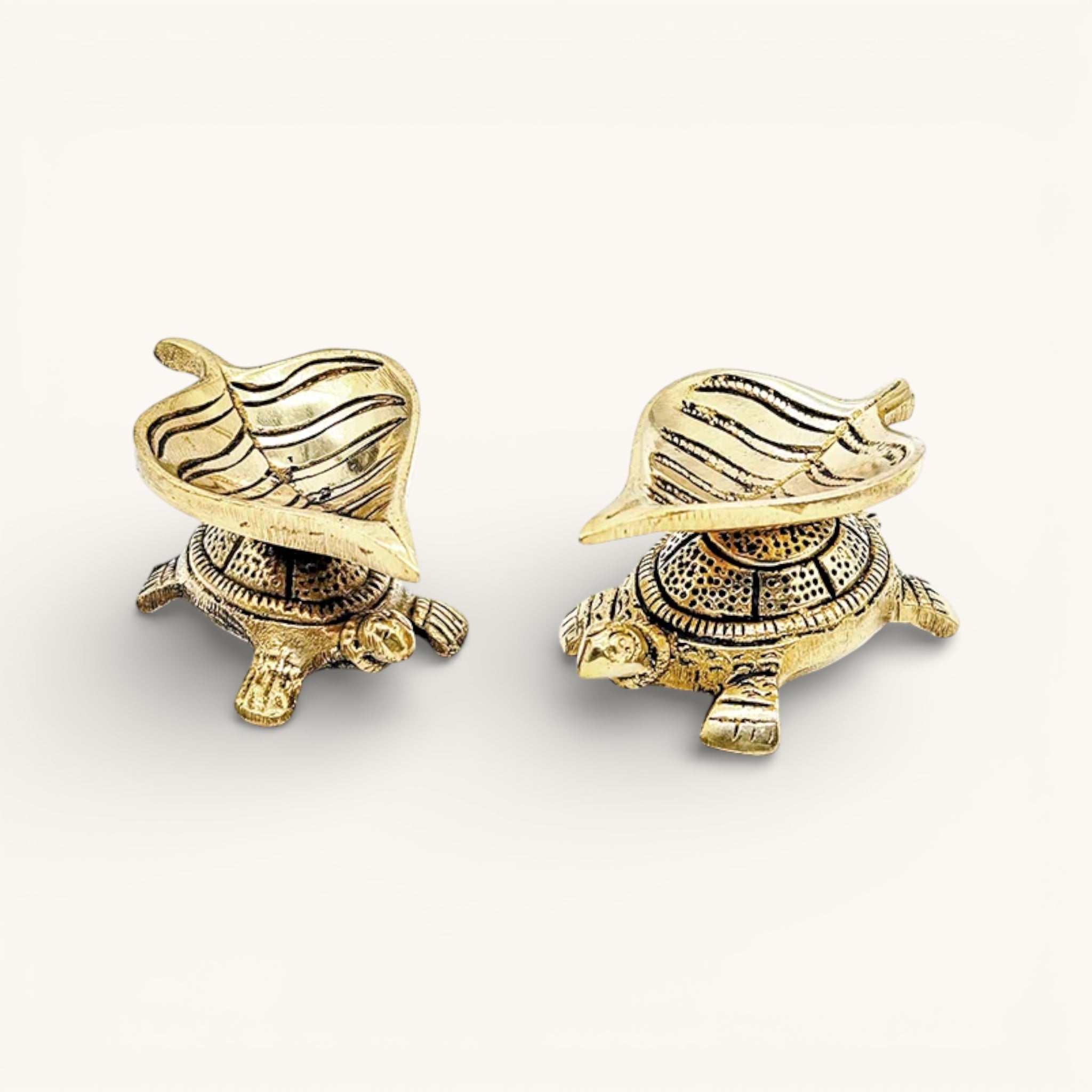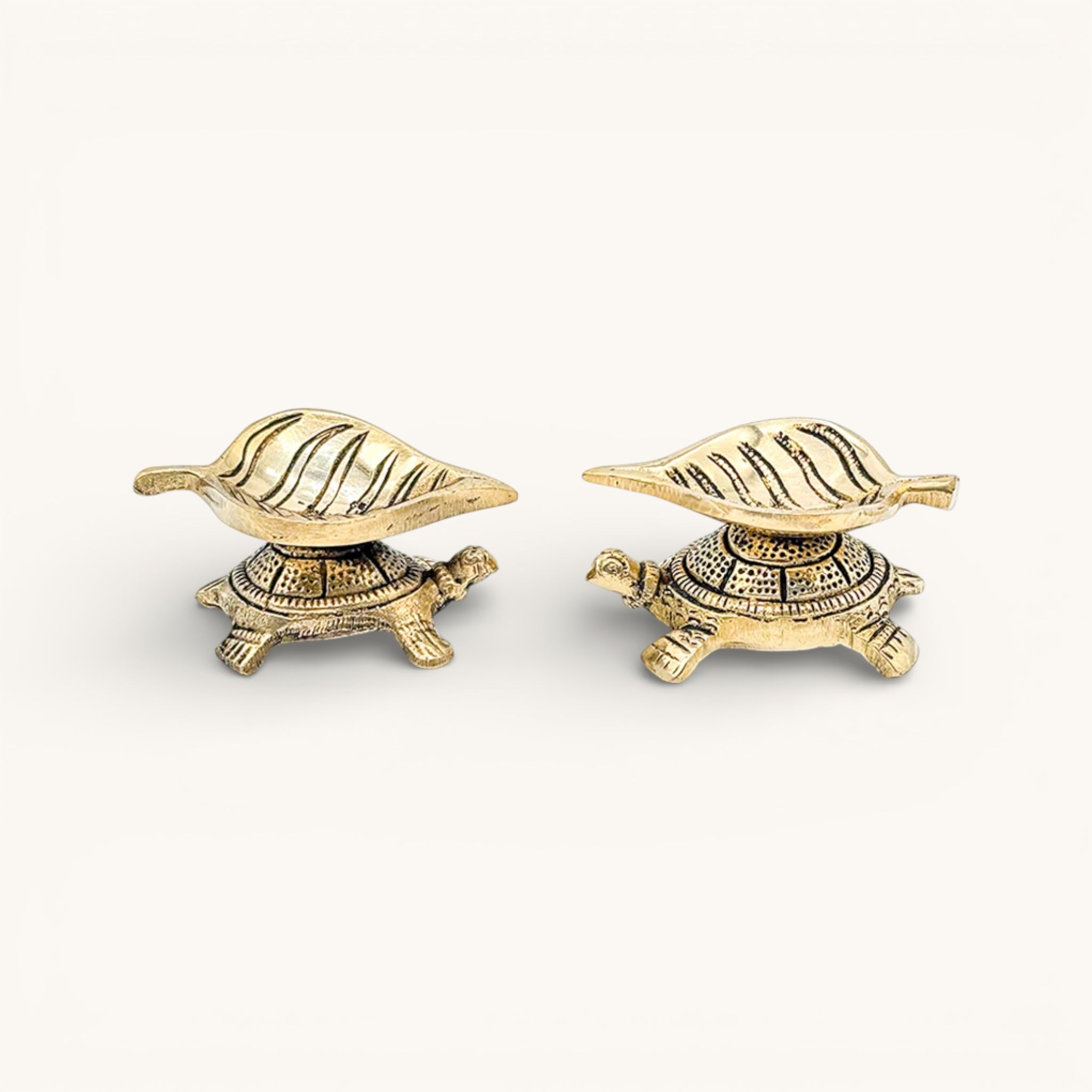 SKU: brass-leaf-diya-on-tortoise-set-of-2