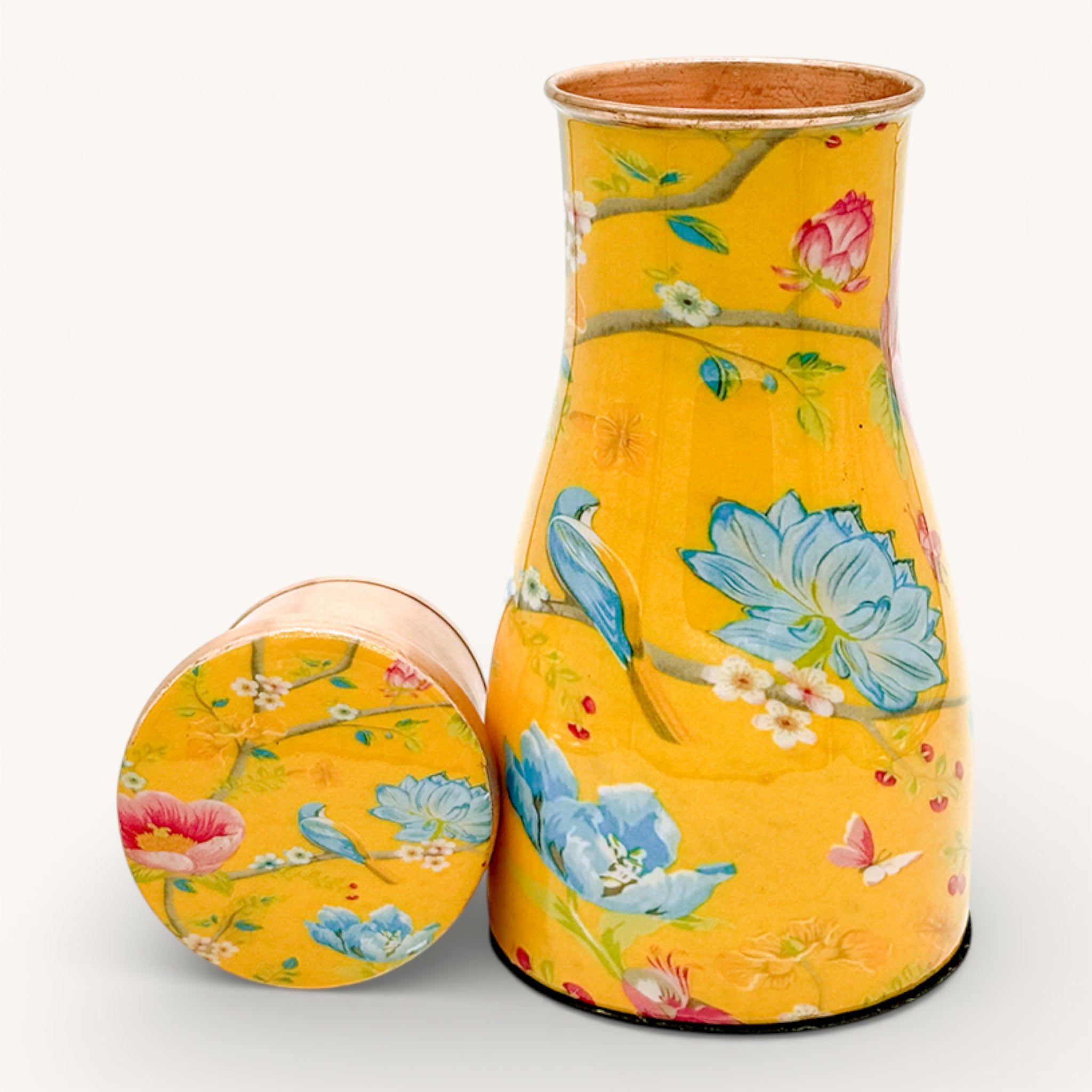 Summer Printed Bird and Floral Copper Bedroom Water Jar